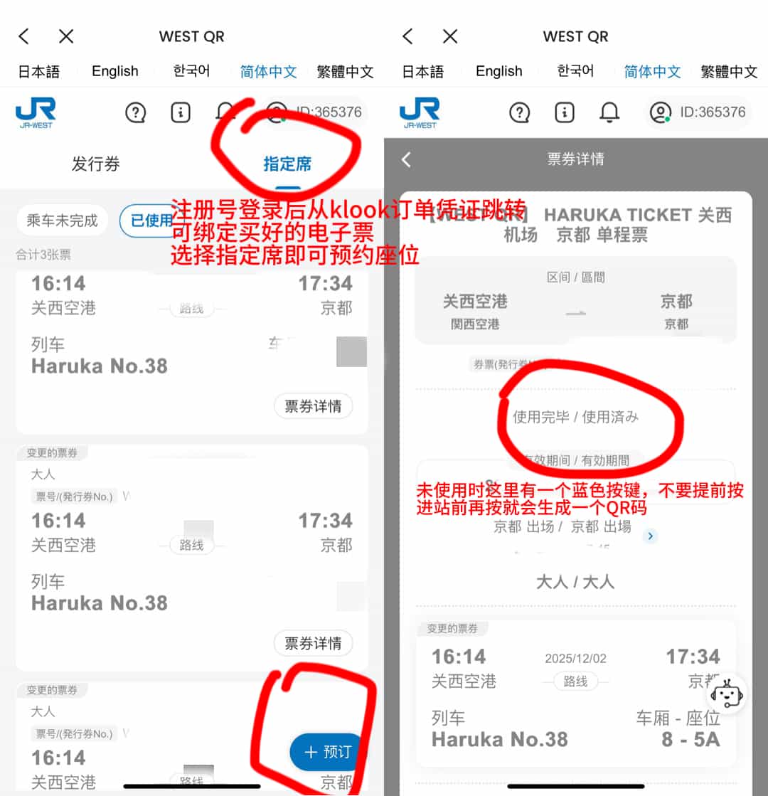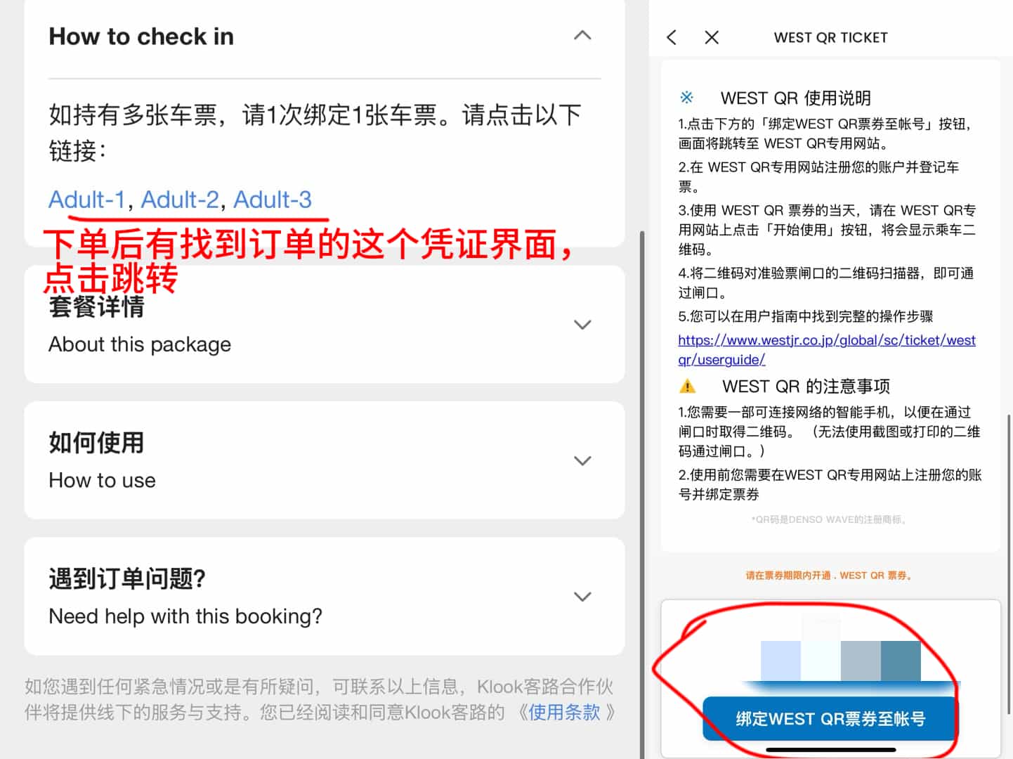 下单后会给你凭证,绑定QR码选座需要跳转WEST QR的官网,先注册然后登录绑定买好的票。