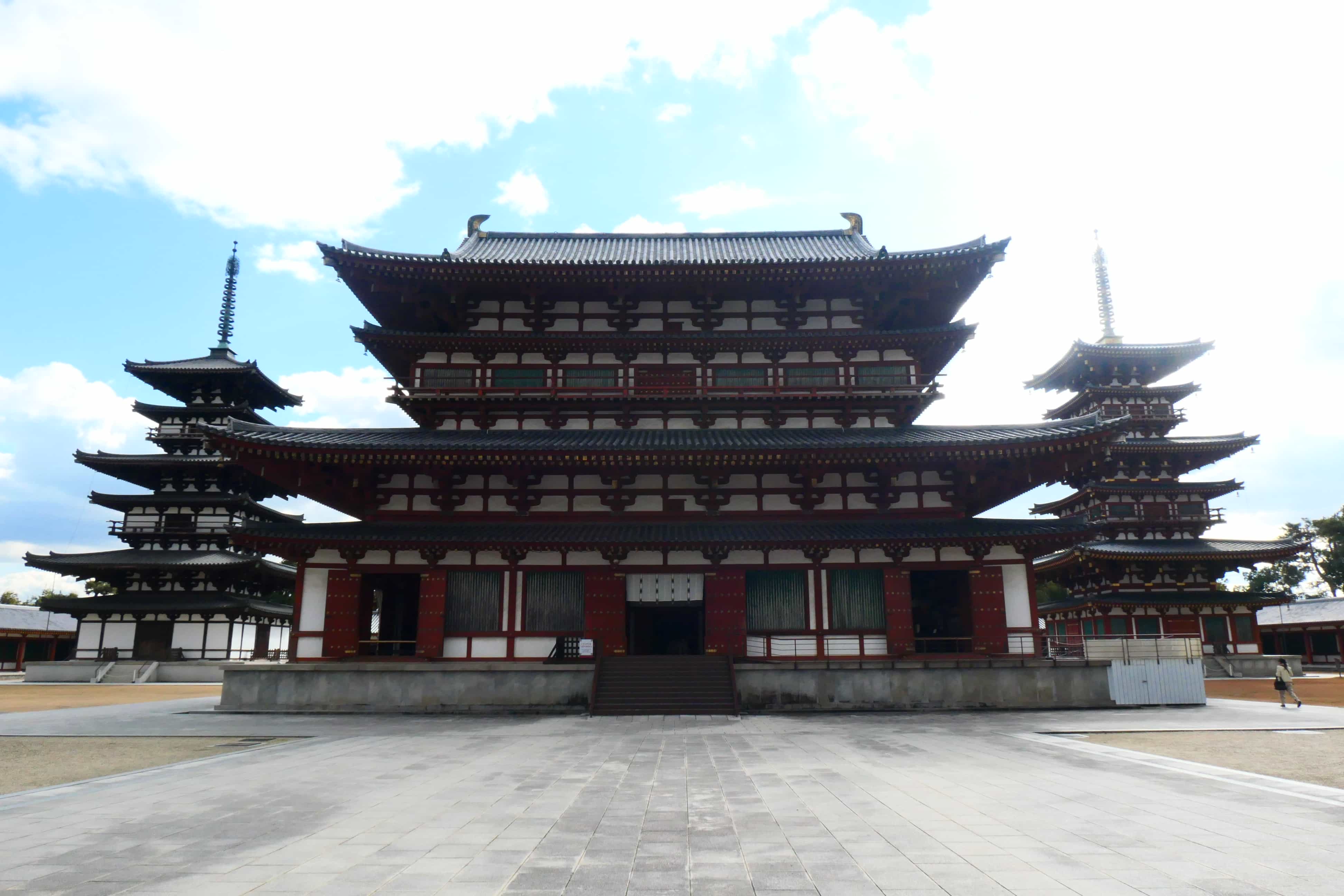 这里在历史上也遭战火毁灭过,如今的西塔(右)是烧毁后重建的,东塔(左)建于奈良时代天平时期(约8世纪中叶),是药师寺唯一保存至今的建筑,经历多次修缮。门外汉完全看不出哪个算重建那个算修缮,只是觉得修旧如新挺好的……