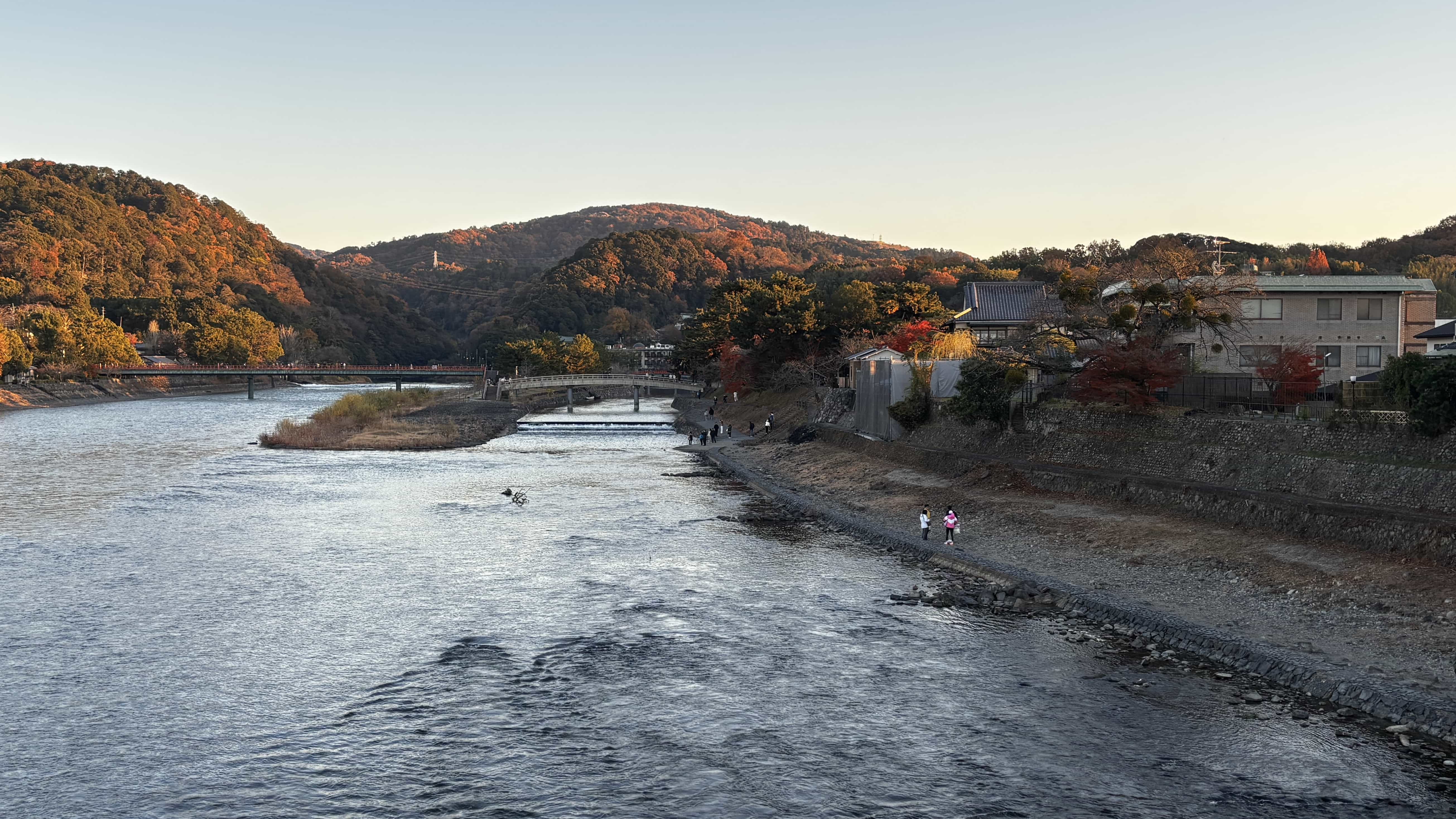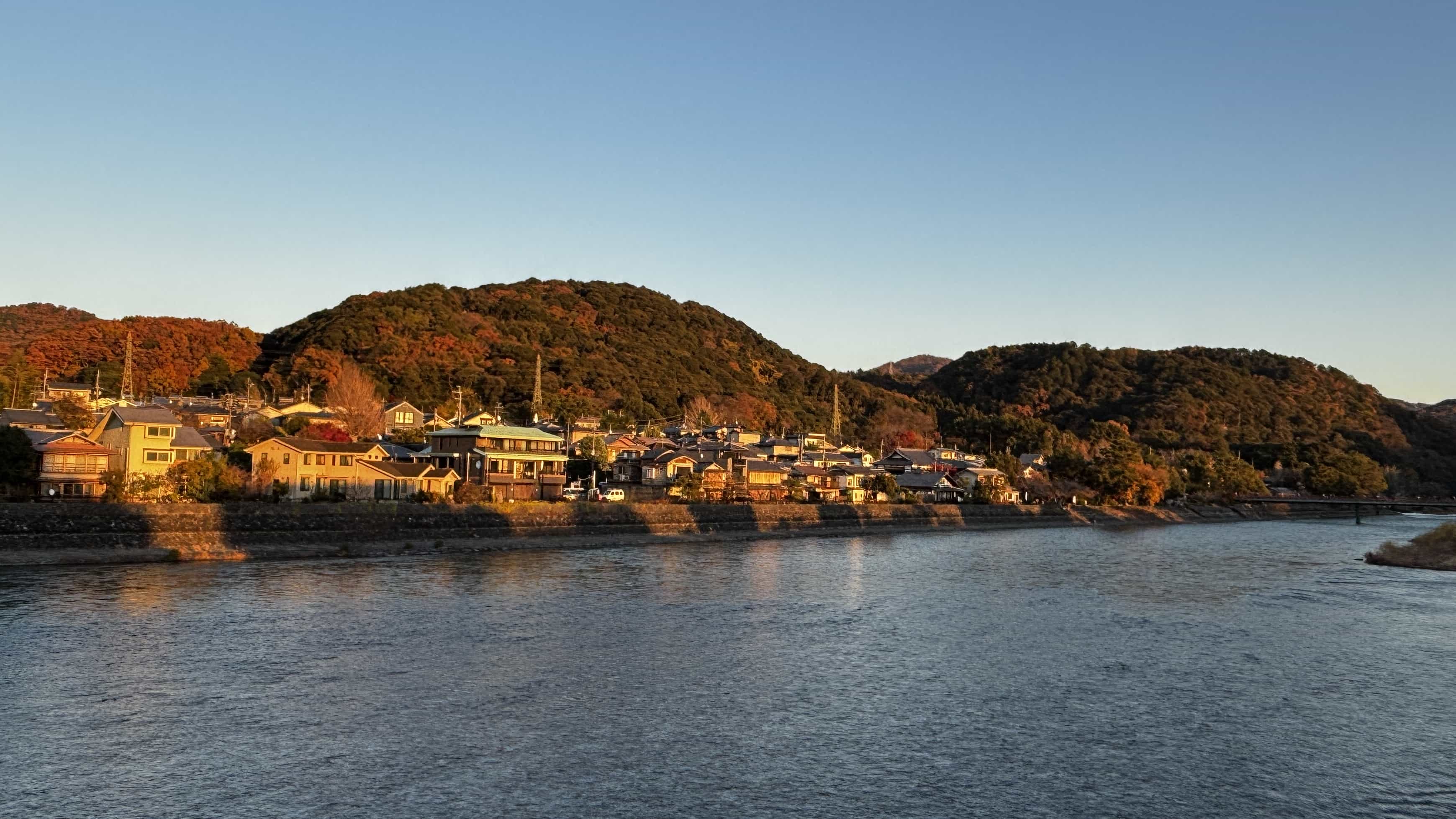 从源氏物语博物馆出来折返宇治桥,正好是落日时分,两岸风景一览无余,落日余晖给红叶遍布的山更添秋色。半日游一趟,这里成了我心目中关西最佳(感觉很适合养老和放空自己😂)。但是缺点也是有的,宇治回京都等车的地方只有一个小站台,傍晚时分,站台上等待的人特别多,晚高峰时期的奈良线特别挤特别慢。
